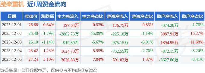 资金流向数据方面,本周潍柴重机主力资金合计净流入1076.53万元,游资资金合计净流出1185.1万元,散户资金合计净流入108.57万元。本周资金流向一览见下表: