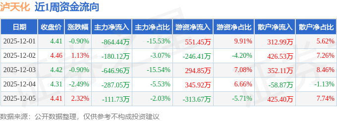 沪深股通持股方面,截止2025年12月5日收盘,泸天化深股通持股数为485.37万股,占流通股比为31.0%。