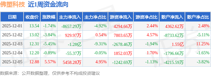 资金流向数据方面,本周佛塑科技主力资金合计净流出1.52亿元,游资资金合计净流入1.0亿元,散户资金合计净流入5124.9万元。本周资金流向一览见下表: