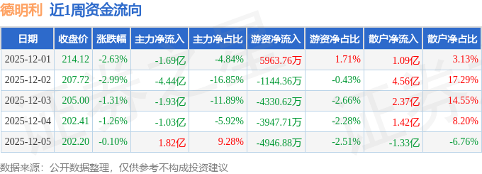 资金流向数据方面,本周德明利主力资金合计净流出7.27亿元,游资资金合计净流出8405.81万元,散户资金合计净流入8.11亿元。本周资金流向一览见下表: