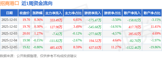 沪深股通持股方面,截止2025年12月5日收盘,招商港口深股通持股数为523.8万股,占流通股比为30.0%。
