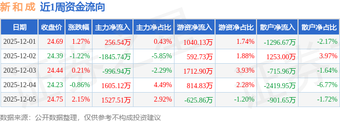 资金流向数据方面,本周新 和 成主力资金合计净流入546.5万元,游资资金合计净流入3534.72万元,散户资金合计净流出4081.22万元。本周资金流向一览见下表: