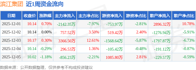 沪深股通持股方面,截止2025年12月5日收盘,滨江集团深股通持股数为2498.25万股,占流通股比为93.0%。