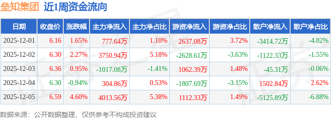 资金流向数据方面,本周垒知集团主力资金合计净流入7829.92万元,游资资金合计净流入375.5万元,散户资金合计净流出8205.42万元。本周资金流向一览见下表: