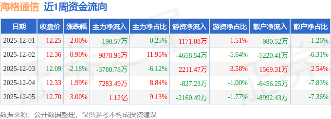 沪深股通持股方面,截止2025年12月5日收盘,海格通信深股通持股数为4638.91万股,占流通股比为191.0%。