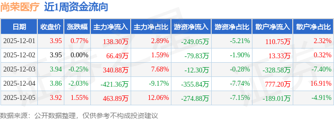 资金流向数据方面,本周尚荣医疗主力资金合计净流入588.2万元,游资资金合计净流出971.89万元,散户资金合计净流入383.69万元。本周资金流向一览见下表: