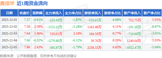 资金流向数据方面,本周奥佳华主力资金合计净流出2715.97万元,游资资金合计净流入3286.51万元,散户资金合计净流出570.54万元。本周资金流向一览见下表:
