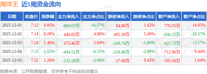 资金流向数据方面,本周海洋王主力资金合计净流出371.4万元,游资资金合计净流入138.25万元,散户资金合计净流入233.14万元。本周资金流向一览见下表: