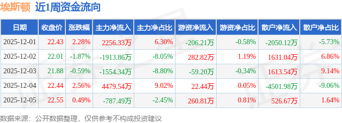 资金流向数据方面,本周埃斯顿主力资金合计净流入2480.18万元,游资资金合计净流入300.67万元,散户资金合计净流出2780.85万元。本周资金流向一览见下表: