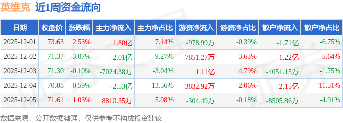 资金流向数据方面,本周英维克主力资金合计净流出2.55亿元,游资资金合计净流入2.15亿元,散户资金合计净流入4056.84万元。本周资金流向一览见下表: