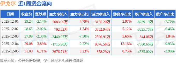 资金流向数据方面,本周伊戈尔主力资金合计净流入4396.65万元,游资资金合计净流入1.9亿元,散户资金合计净流出2.34亿元。本周资金流向一览见下表: