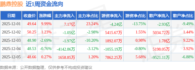 资金流向数据方面,本周鹏鼎控股主力资金合计净流入3.91亿元,游资资金合计净流出2.83亿元,散户资金合计净流出1.08亿元。本周资金流向一览见下表: