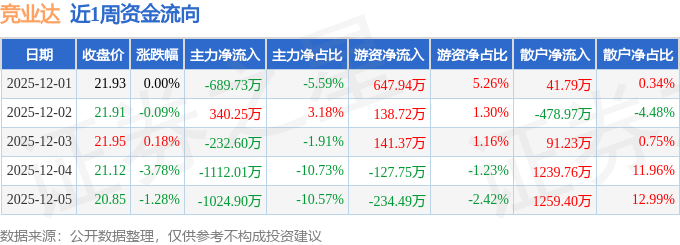 资金流向数据方面,本周竞业达主力资金合计净流出2719.0万元,游资资金合计净流入565.79万元,散户资金合计净流入2153.21万元。本周资金流向一览见下表: