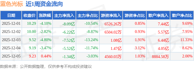 资金流向数据方面,本周蓝色光标主力资金合计净流出28.69亿元,游资资金合计净流入4.31亿元,散户资金合计净流入24.38亿元。本周资金流向一览见下表: