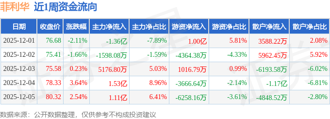 资金流向数据方面,本周菲利华主力资金合计净流入1.64亿元,游资资金合计净流出3224.15万元,散户资金合计净流出1.32亿元。本周资金流向一览见下表: