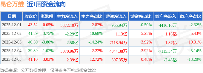 资金流向数据方面,本周昆仑万维主力资金合计净流出1.64亿元,游资资金合计净流入2.24亿元,散户资金合计净流出5932.74万元。本周资金流向一览见下表: