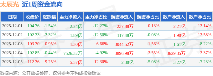 资金流向数据方面,本周太辰光主力资金合计净流入1.99亿元,游资资金合计净流出1.59亿元,散户资金合计净流出3977.4万元。本周资金流向一览见下表: