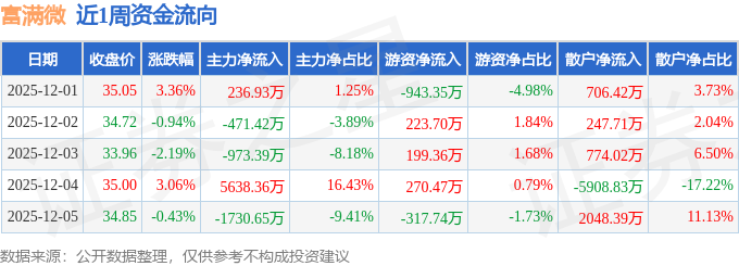 沪深股通持股方面,截止2025年12月5日收盘,富满微深股通持股数为207.89万股,占流通股比为96.0%。