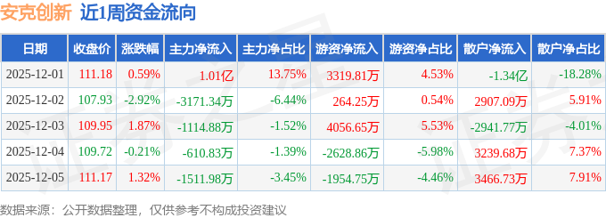 资金流向数据方面,本周安克创新主力资金合计净流入3668.23万元,游资资金合计净流入3057.12万元,散户资金合计净流出6725.34万元。本周资金流向一览见下表: