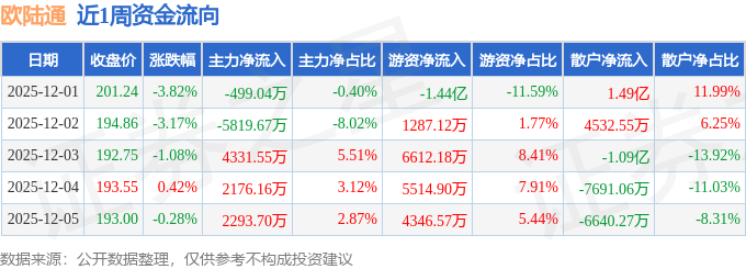 资金流向数据方面,本周欧陆通主力资金合计净流入2482.69万元,游资资金合计净流入3374.96万元,散户资金合计净流出5857.65万元。本周资金流向一览见下表: