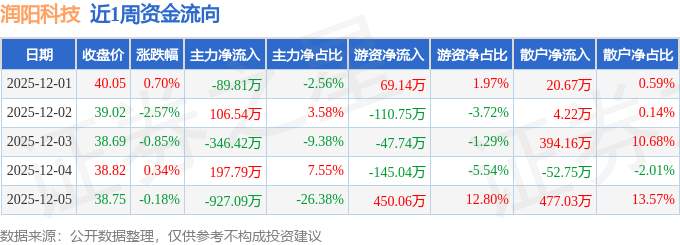 资金流向数据方面,本周润阳科技主力资金合计净流出1058.98万元,游资资金合计净流入215.66万元,散户资金合计净流入843.32万元。本周资金流向一览见下表: