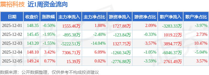 资金流向数据方面,本周震裕科技主力资金合计净流入2759.66万元,游资资金合计净流出1105.43万元,散户资金合计净流出1654.23万元。本周资金流向一览见下表:
