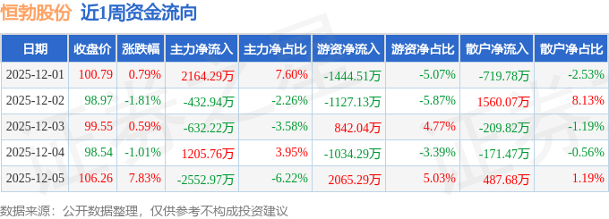 资金流向数据方面,本周恒勃股份主力资金合计净流出248.08万元,游资资金合计净流出698.6万元,散户资金合计净流入946.67万元。本周资金流向一览见下表: