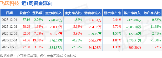 资金流向数据方面,本周飞沃科技主力资金合计净流入780.65万元,游资资金合计净流入3232.75万元,散户资金合计净流出4013.41万元。本周资金流向一览见下表: