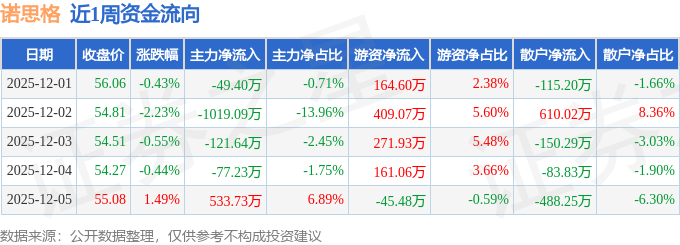 资金流向数据方面,本周诺思格主力资金合计净流出733.63万元,游资资金合计净流入961.18万元,散户资金合计净流出227.55万元。本周资金流向一览见下表: