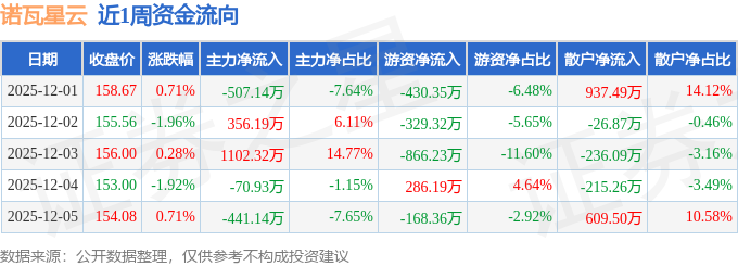 沪深股通持股方面,截止2025年12月5日收盘,诺瓦星云深股通持股数为33.83万股,占流通股比为183.0%。