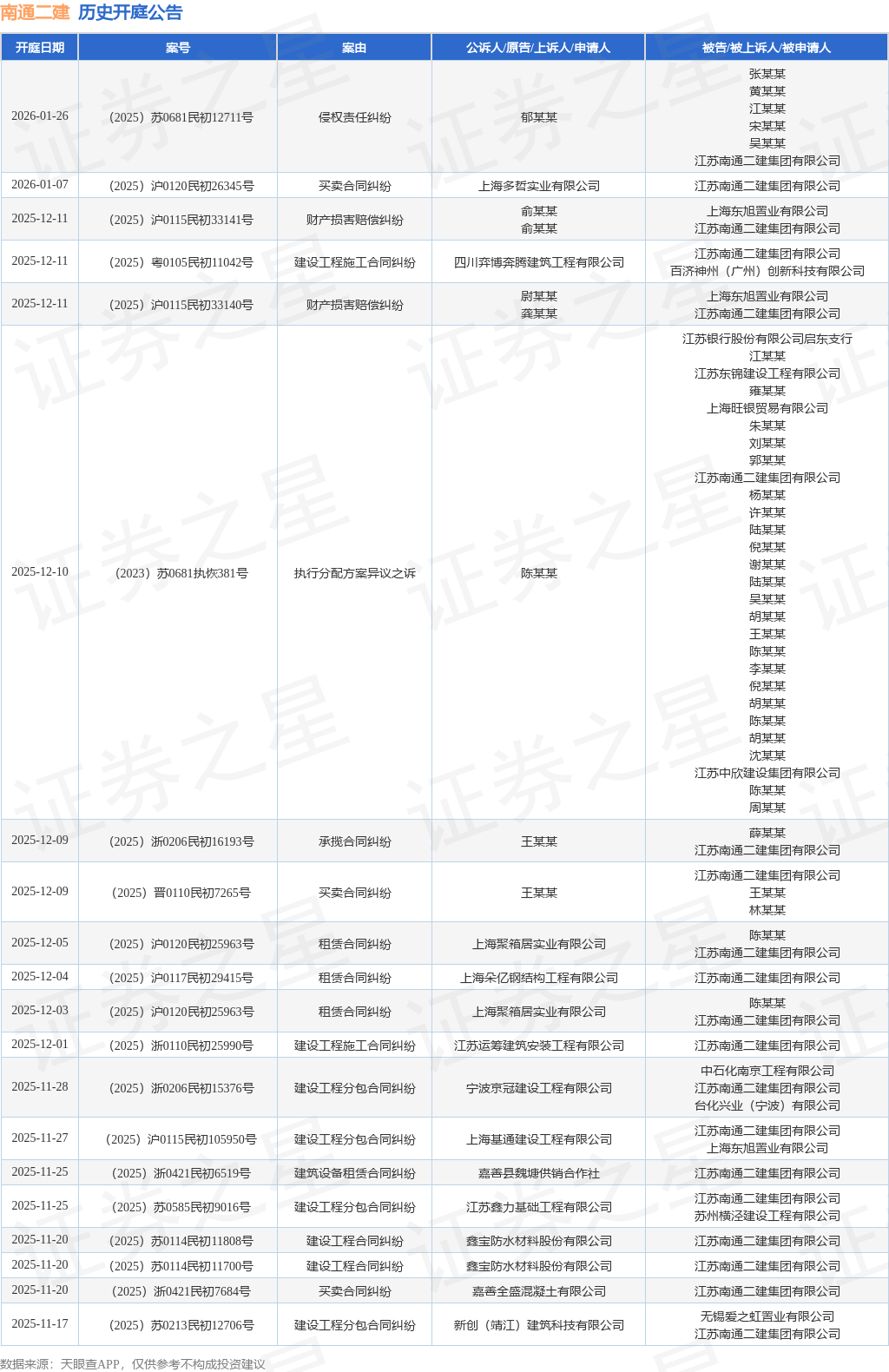 证券之星消息,根据天眼查APP显示,近日公布了一则江苏南通二建集团有限公司作为被告/被上诉人的开庭公告,详细内容如下: