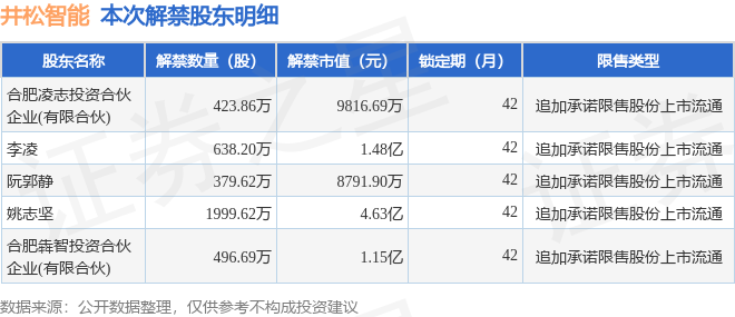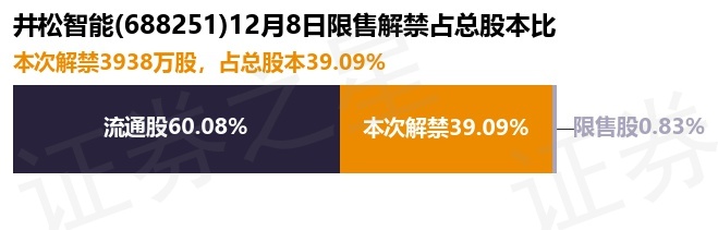 证券之星消息,根据市场公开信息整理,井松智能(688251)于12月8日将有3938.0万股限售股份解禁,为公司追加承诺限售股份上市流通,占公司总股本39.09%。(本次数据根据历史公告整理得出,实际情况以上市公司最新公告为准)最近一年内,该股累计解禁55.93万股,占总股本的0.56%。本次解禁后,公司还有83.9万股限售股份,占总股本0.83%。具体如下图所示: