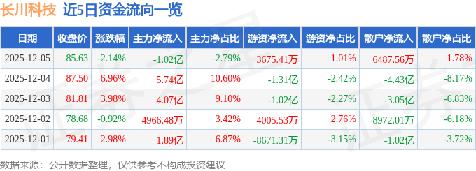 12月5日的资金流向数据方面,主力资金净流出1.02亿元,占总成交额2.79%,游资资金净流入3675.41万元,占总成交额1.01%,散户资金净流入6487.56万元,占总成交额1.78%。