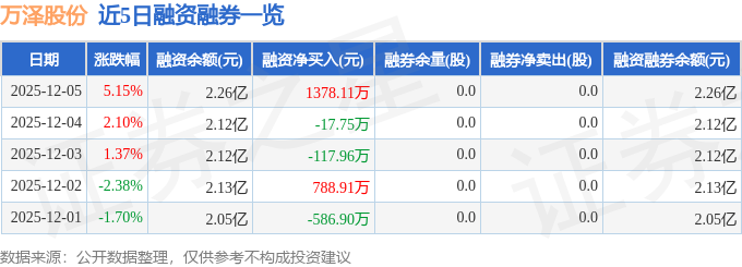 万泽股份融资融券信息显示,融资方面,当日融资买入4191.22万元,融资偿还2813.11万元,融资净买入1378.11万元。融券方面,融券卖出0.0股,融券偿还0.0股,融券余量0.0股,融券余额0.0万元。融资融券余额2.26亿元。