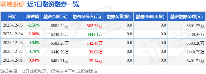 证券之星消息,截至2025年12月5日收盘,联域股份(001326)报收于43.84元,下跌2.56%,换手率5.56%,成交量1.34万手,成交额5857.59万元。