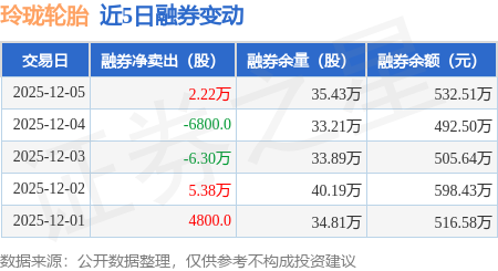 证券之星消息,12月5日,玲珑轮胎(601966)融资买入2927.52万元,融资偿还2344.73万元,融资净买入582.79万元,融资余额7.26亿元,近3个交易日已连续净买入累计1753.79万元,近20个交易日中有12个交易日出现融资净买入。