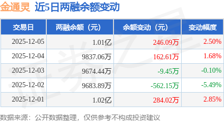 融资融券余额1.01亿元,较昨日上涨2.5%。