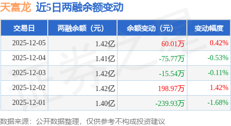 证券之星消息,12月5日,天富龙(603406)融资买入394.72万元,融资偿还334.71万元,融资净买入60.01万元,融资余额1.42亿元。