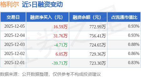 证券之星消息,12月5日,格利尔(920641)融资买入85.87万元,融资偿还69.28万元,融资净买入16.59万元,融资余额772.99万元,近20个交易日中有12个交易日出现融资净买入。