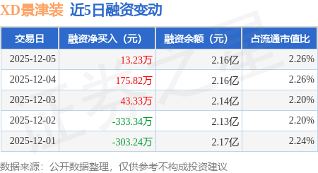 证券之星消息,12月5日,XD景津装(603279)融资买入499.59万元,融资偿还486.36万元,融资净买入13.23万元,融资余额2.16亿元,近3个交易日已连续净买入累计232.39万元。