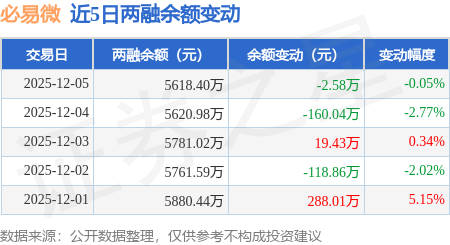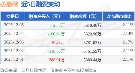 证券之星消息,12月5日,必易微(688045)融资买入278.75万元,融资偿还281.33万元,融资净卖出2.58万元,融资余额5618.4万元。