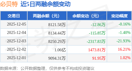 证券之星消息,12月5日,必贝特(688759)融资买入1085.95万元,融资偿还1098.81万元,融资净卖出12.86万元,融资余额8121.58万元。