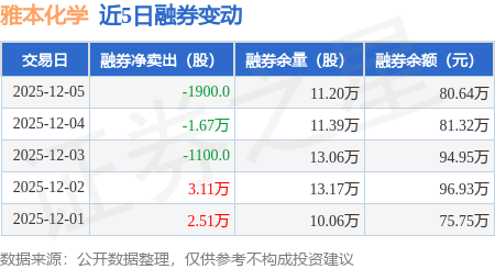 证券之星消息,12月5日,雅本化学(300261)融资买入684.06万元,融资偿还770.11万元,融资净卖出86.05万元,融资余额2.35亿元。