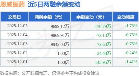 证券之星消息,12月5日,恩威医药(301331)融资买入85.64万元,融资偿还256.42万元,融资净卖出170.79万元,融资余额9699.12万元。