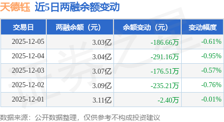 证券之星消息,12月5日,天德钰(688252)融资买入614.77万元,融资偿还801.37万元,融资净卖出186.6万元,融资余额3.02亿元。