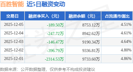 证券之星消息,12月5日,百胜智能(301083)融资买入692.0万元,融资偿还881.51万元,融资净卖出189.5万元,融资余额8753.12万元。