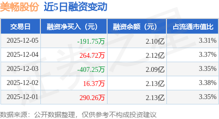 证券之星消息,12月5日,美畅股份(300861)融资买入678.65万元,融资偿还870.41万元,融资净卖出191.75万元,融资余额2.1亿元。