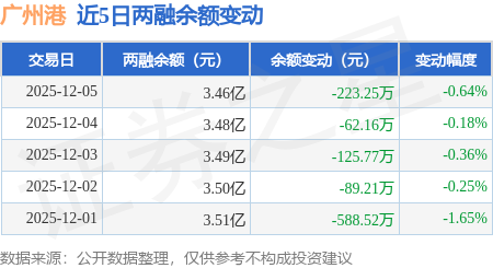 证券之星消息,12月5日,广州港(601228)融资买入496.61万元,融资偿还715.86万元,融资净卖出219.25万元,融资余额3.44亿元。
