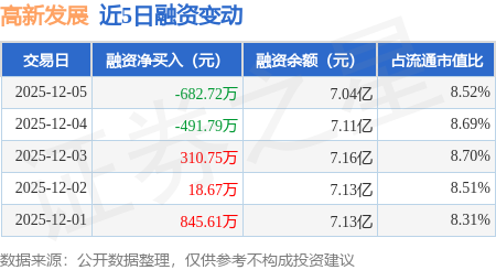 证券之星消息,12月5日,高新发展(000628)融资买入1316.88万元,融资偿还1999.6万元,融资净卖出682.72万元,融资余额7.04亿元。