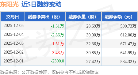 证券之星消息,12月5日,东阳光(600673)融资买入3177.06万元,融资偿还4320.96万元,融资净卖出1143.9万元,融资余额27.34亿元。